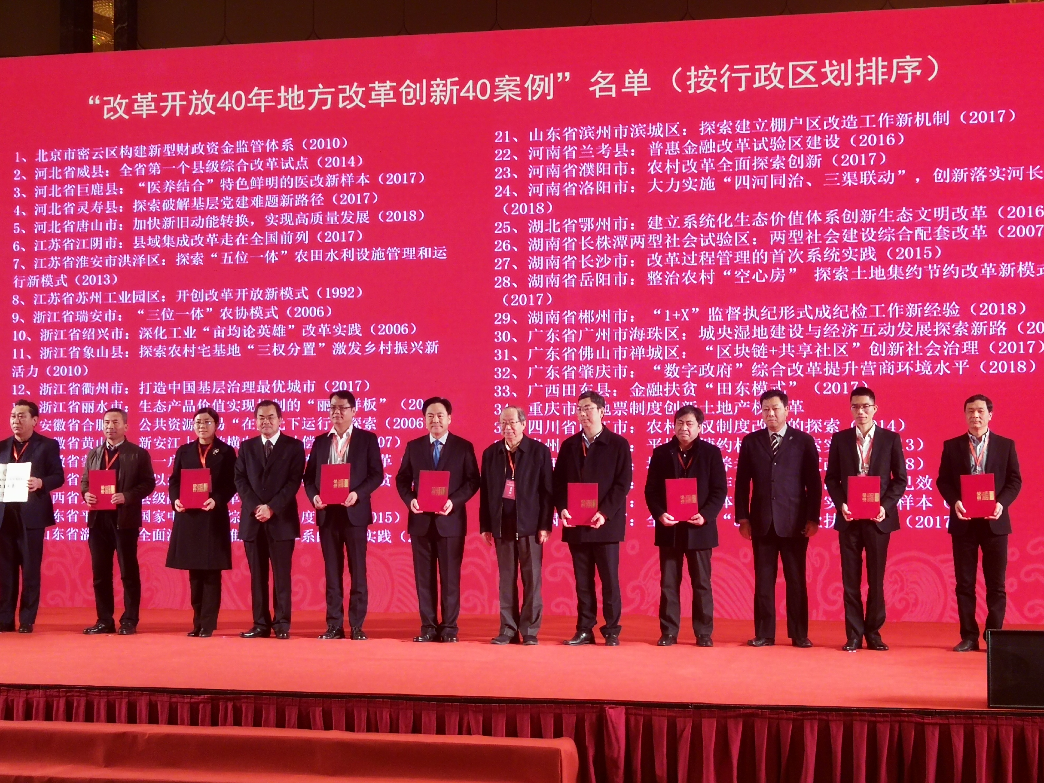 “改革開放40年地方改革創(chuàng)新40案例”名單揭曉