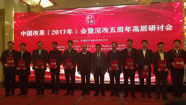 2018年1月13日上午9時,由中國經(jīng)濟(jì)體制改革雜志社主辦的“貫徹黨的十九大會議精神 推進(jìn)全面深化改革取得更大成功——中國改革(2017)年會暨深改五周年高層研討會”在北京西苑飯店隆重召開。研討會開幕式上,主辦單位揭曉了“2017中國改革年度案例單位”名單。