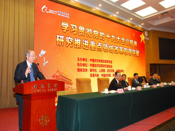 高會長從改革角度解讀了十九大報告,重點分析了新時代全面深化改革的主要特征和新時代全面深化改革要注意的幾個關系。 國務院發(fā)展研究中心副主任王一鳴,國家發(fā)改委體改司司長徐善長,中國經(jīng)濟改革研究基金會理事長宋曉梧,深圳創(chuàng)新發(fā)展研究院理事長、中國體改研究會副會長張思平,中國綜合開發(fā)研究院院長、中國體改研究會副會長樊綱等,就加快建設現(xiàn)代化經(jīng)濟體系、新時期全面深化改革、以更平衡的發(fā)展?jié)M足人民需求,建立房地產(chǎn)穩(wěn)定發(fā)展的長效機制做主旨演講。論壇還就“國企混合所有制改革研究”“推動政府部門改革,形成改革開放新格局”“創(chuàng)新驅動的體制機制改革”“雄安新區(qū)建設的改革與創(chuàng)新”展開專題研討。