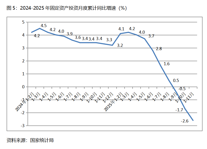 五、投資增速持續(xù)下降。1-11月份,固定資產(chǎn)投資總額同比下降2.6%,比1-10月份下降1.7%擴(kuò)大了0.9個百分點(diǎn),1-10月份降幅由1-9月份下降0.5%擴(kuò)大了1.2個百分點(diǎn),其中,1-11月份國有控股投資同比下降1.1%,1-10月份為增長0.1%;民間投資下降5.3%,比1-10月份下降4.5%擴(kuò)大了0.8個百分點(diǎn)。三次產(chǎn)業(yè)投資中,第一產(chǎn)業(yè)投資同比增長2.7%,比1-10月份增長2.9%回落0.2個百分點(diǎn);第二產(chǎn)業(yè)投資增長3.9%,比1-10月份增長4.8%回落0.9個百分點(diǎn);第三產(chǎn)業(yè)投資下降6.3%,比1-10月份下降5.3%擴(kuò)大1.0 百分點(diǎn)。固定資產(chǎn)投資增速數(shù)月的持續(xù)回落乃至下降,也需要引起高度關(guān)注。