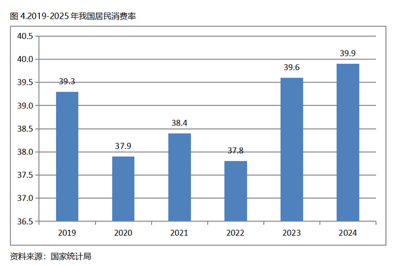 我國是2019年人均GDP超過1萬美元的,在2019-2024年的5年期間,居民消費(fèi)率也呈現(xiàn)先落后升的走勢,總體上看是在低位上保持著穩(wěn)定的態(tài)勢,2024年比2019升0.6個百分點(diǎn)。需要指出的,我國居民消費(fèi)率在人均GDP超過1萬美元后,雖然也保持總體的穩(wěn)定,但明顯處于較低水平。