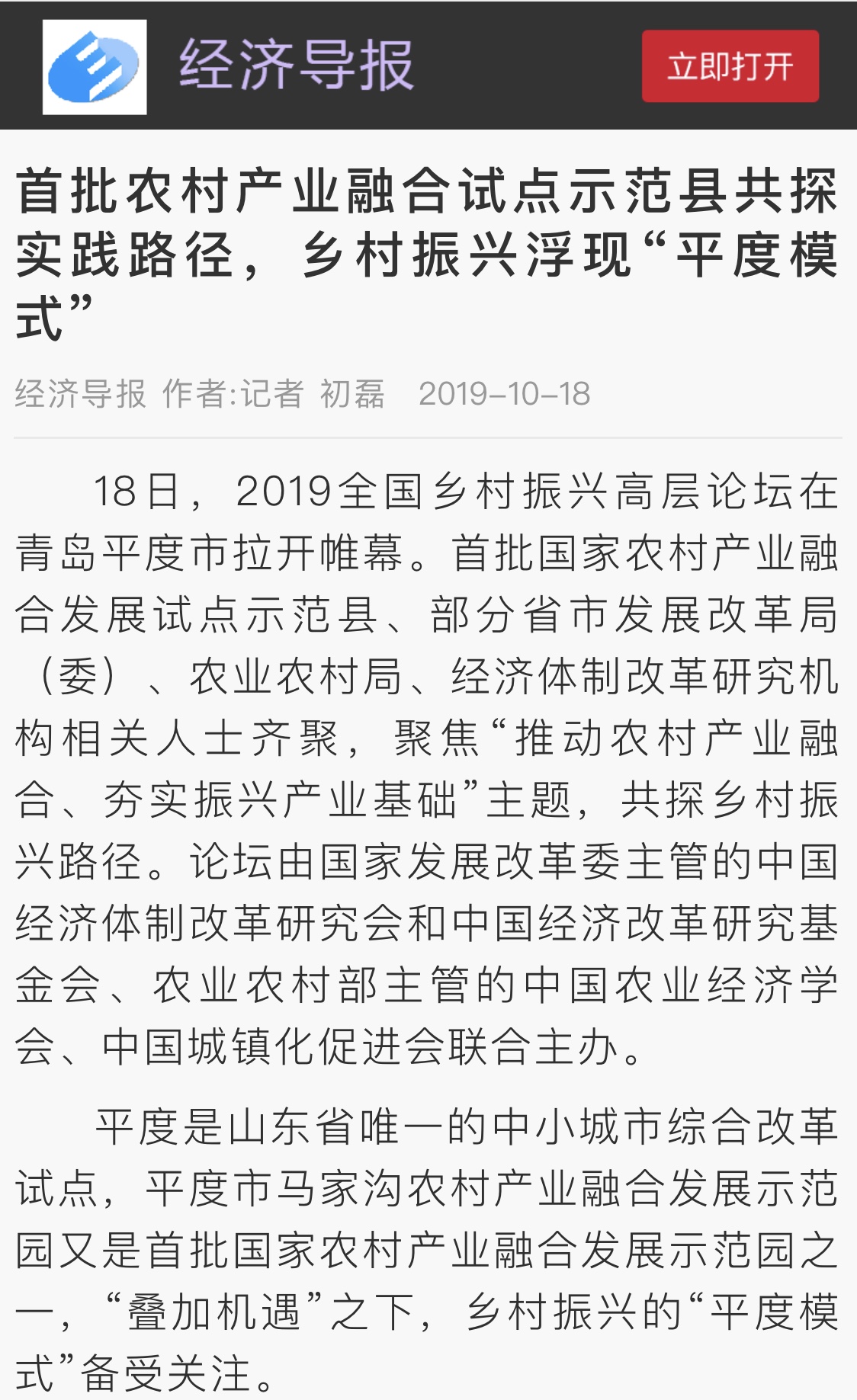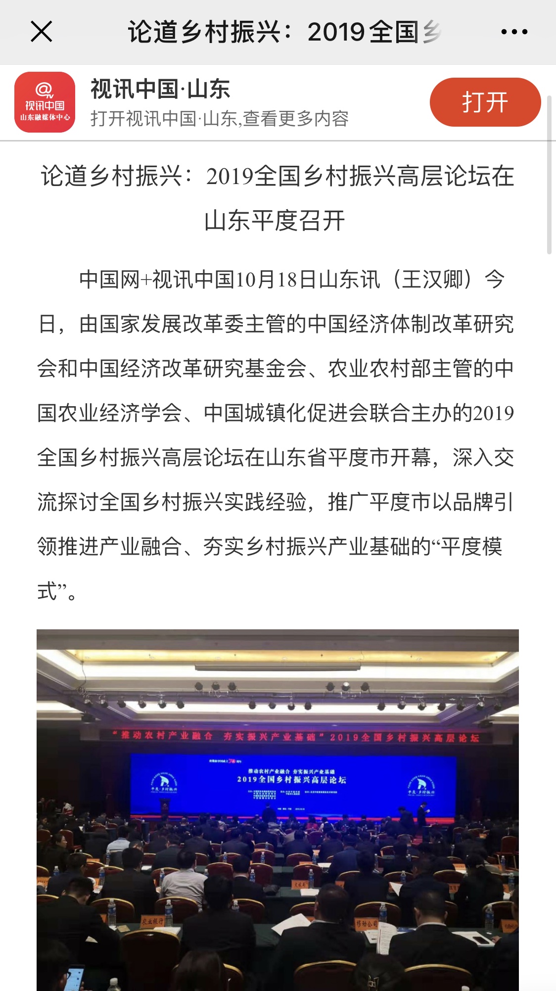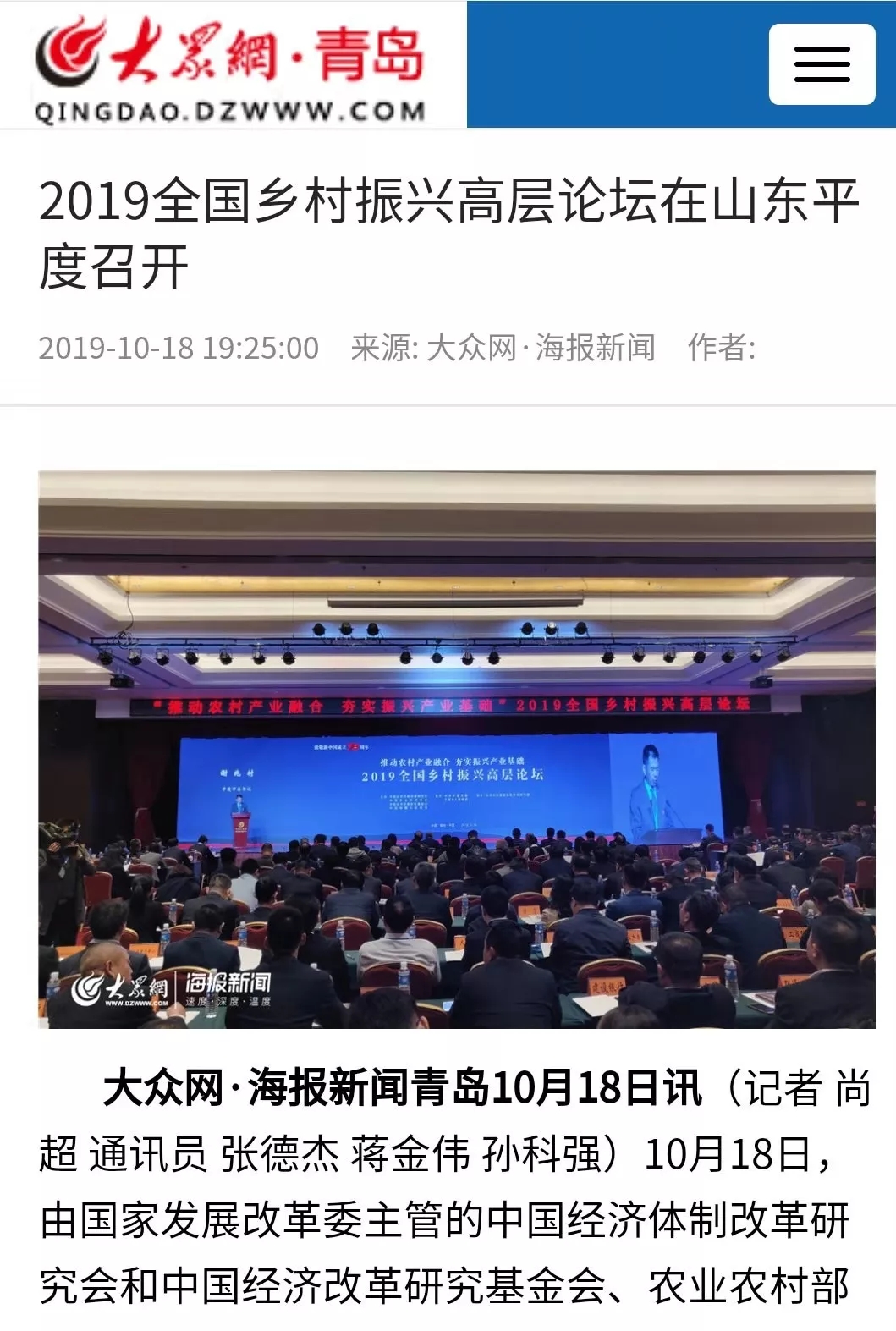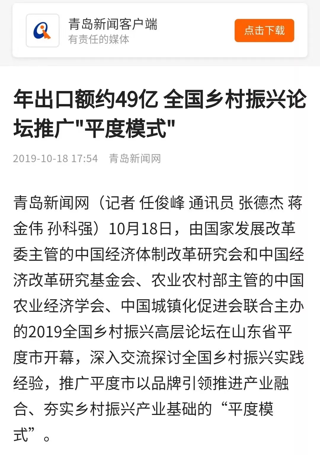 這場在平度舉行的國家級高層論壇受到各級新聞媒體聚焦關(guān)注,中央廣播電視總臺、人民日報、新華社、經(jīng)濟(jì)日報、農(nóng)民日報、中國經(jīng)濟(jì)時報、山東廣播電視臺、大眾日報、青島廣播電視臺、青島日報等20余家媒體記者到現(xiàn)場采訪報道。10月18日上午,青島廣播電視臺藍(lán)睛客戶端現(xiàn)場直播論壇盛況,在線觀看已突破7萬人次。目前,新華社、人民網(wǎng)、鳳凰網(wǎng)、青島廣播電視臺、青島日報、齊魯晚報、青島早報、青島晚報、半島都市報、商周刊、大眾網(wǎng)、中國山東網(wǎng)、青島新聞網(wǎng)等10余家媒體第一時間已刊發(fā)相關(guān)報道。